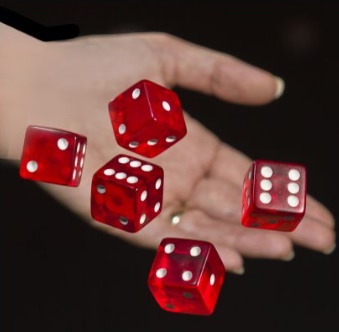 1. 주어진 주사위 5개를 흔들어 던진다. 점수판에 기록할 수 있는 족보에 맞춰 주사위가 나와야 함으로 원하는 주사위들은 남기고 나머지의 주사위들을 다시 던진다.