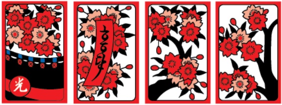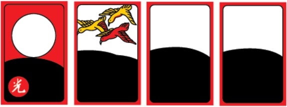 - 삼광: 3장의 광을 획득하였을 때,점수는 각 장당 1점씩하여 3점으로 적용 단 비광이 포함된 경우는 2점이 적용된다.