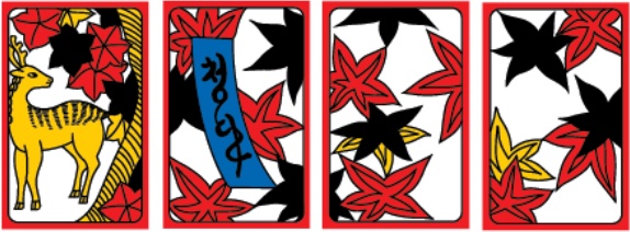 - 청단: 청단이라고 쓰여진 파란색의 띠를 3장 획득하였을 때 점수는 3점이 적용된다.