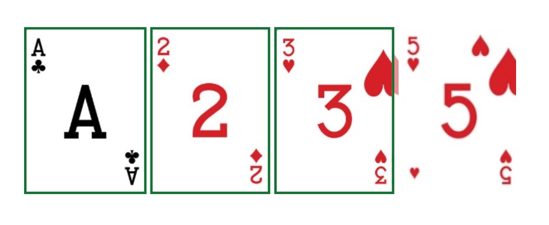 2.베이스 : 4장 중 3장의 무늬와 숫자가 모두 다른 상태를 의미한다 같은 베이스끼리는 서로가 가진 가장 큰 숫자를 골라 둘 중 숫자가 더 낮은 쪽이 이기게 된다 가장 좋은 베이스는 서로 다른 무늬를 가진 A,2,3이 된다.