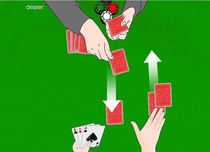 플레이는 각 플레이어가 한 번에 하나씩 다섯 장의 카드를 모두 공개하지 않는 것으로 시작한다 모든 플레이어들에게 5장씩 돌아가고 나머지 카드는 옆에 놓고 종종 칩이나 다른 마커를 그 위에 놓아 보호한 후, 플레이어는 카드를 집어 들고 다른 플레이어에게 보이지 않도록 주의하면서 손에 들고 있으면 베팅라운드가 진행 된다