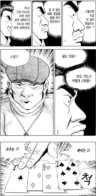 3.투베이스: 2장은 무늬가 같고, 2장은 숫자가 같은 경우이다 사실 투베이스 상태이면 확률적으로 승부와는 거리가 멀다고 볼 수 있다.