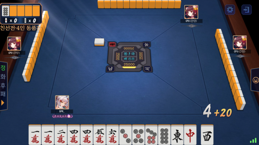 게임이 시작되면, 먼저 누가 선(동)이 될지를 주사위를 던져 결정합니다. 주사위를 던져 가장 높은 숫자가 나온 사람이 동이 되며, 만약 숫자가 같은 경우 해당 선수들만 다시 던집니다. 동이 정해지면, 동의 오른쪽에 있는 사람은 남, 맞은편에 있는 사람은 서, 왼쪽에 있는 사람은 북이 됩니다. 이를 동풍, 남풍, 서풍, 북풍이라고 부르죠.