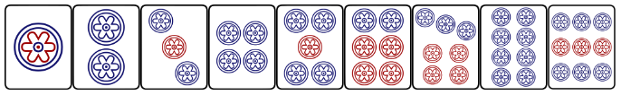 - 통수패 / 통 타일 (Dots): 1부터 9까지의 점이 그려진 타일로, 1통부터 9통까지 9종류 총 4세트가 있습니다.